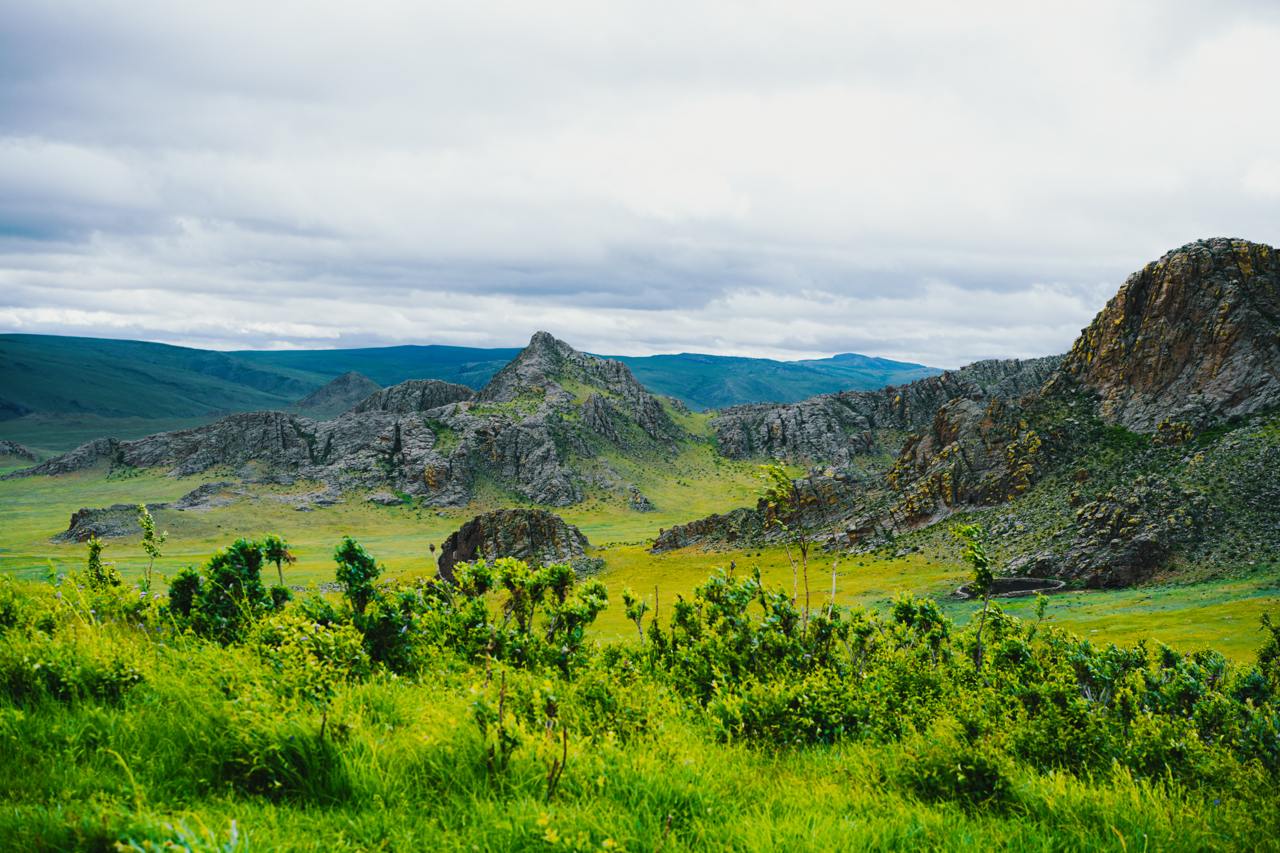 drive from Ulaanbaatar city. Mountain range is about 100 km by 40 km long, rocky, grassy, with